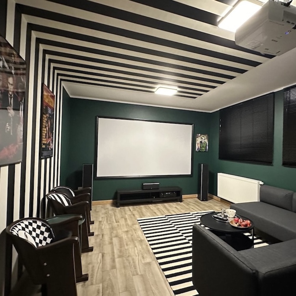 Kino w SIRVIS to idealne miejsce na spokojne wieczory po dniu spędzonym nad jeziorem, w lesie lub na rowerowych trasach. Duży ekran, wygodna kanapa, nagłośnienie kina domowego oraz dostęp do platform streamingowych sprawiają, że seanse filmowe, serialowe maratony i sportowe emocje mają tu zupełnie inny wymiar. To przestrzeń do wspólnego oglądania filmów, meczów i koncertów, z miską popcornu pod ręką i czasem, który płynie slow. Wnętrze ma lekko kinowy, klubowy charakter i doskonale wpisuje się w wieczorny rytm SIRVIS. Sala kinowa to naturalne dopełnienie pobytu, szczególnie gdy pogoda zachęca do pozostania w środku lub gdy masz ochotę na dobry seans.