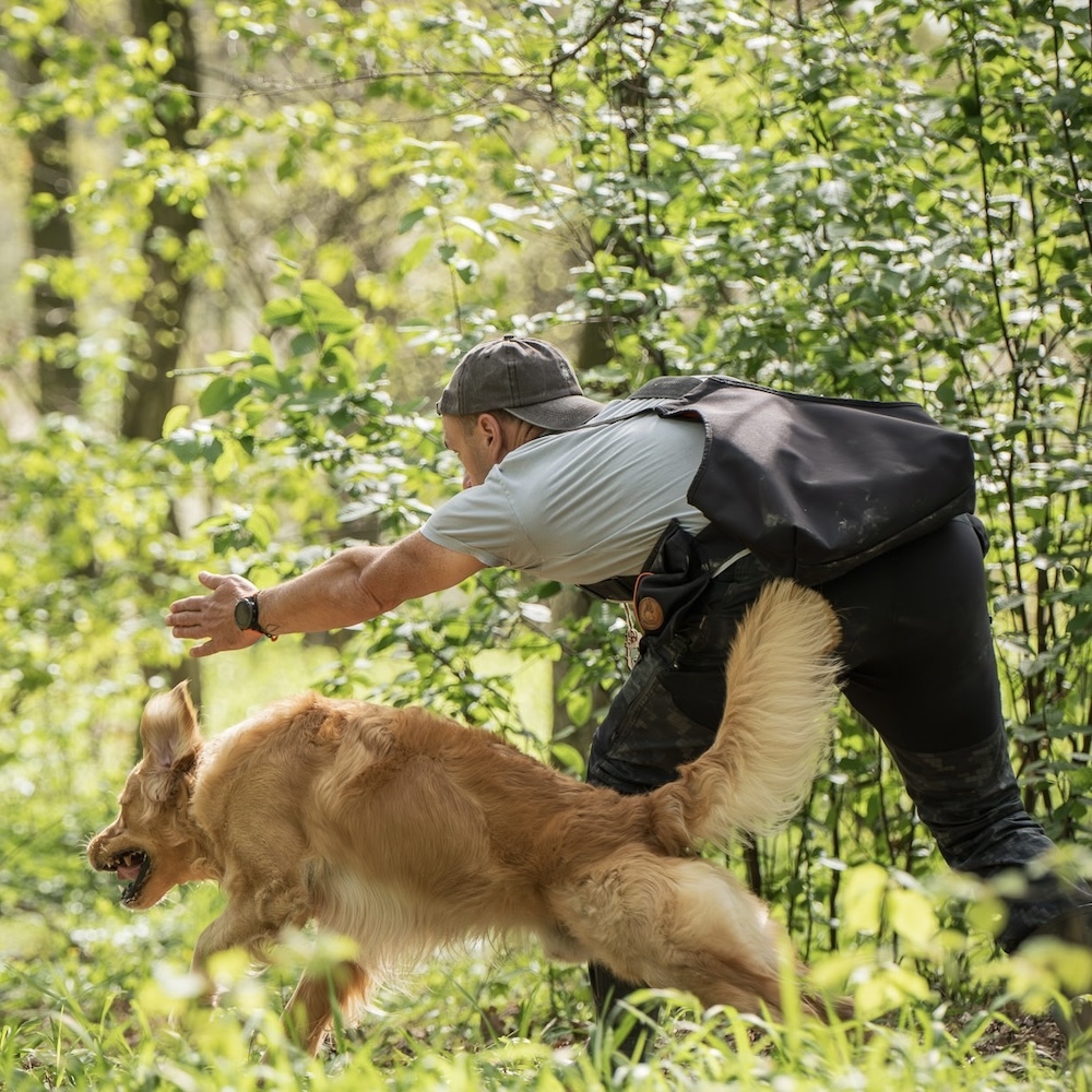 Pokażę Wam, jak pracuje retriever. Zrobimy małą symulację polowania. Spokojnie, kaczek nie będzie. Ja przynoszę tylko wałki 😉 Będą strzały (takie treningowe), będziecie chować wałki w trawie, krzakach, wśród drzew, a ja będę je odnajdywał i przynosił - szybko, skupiony, szczęśliwy.